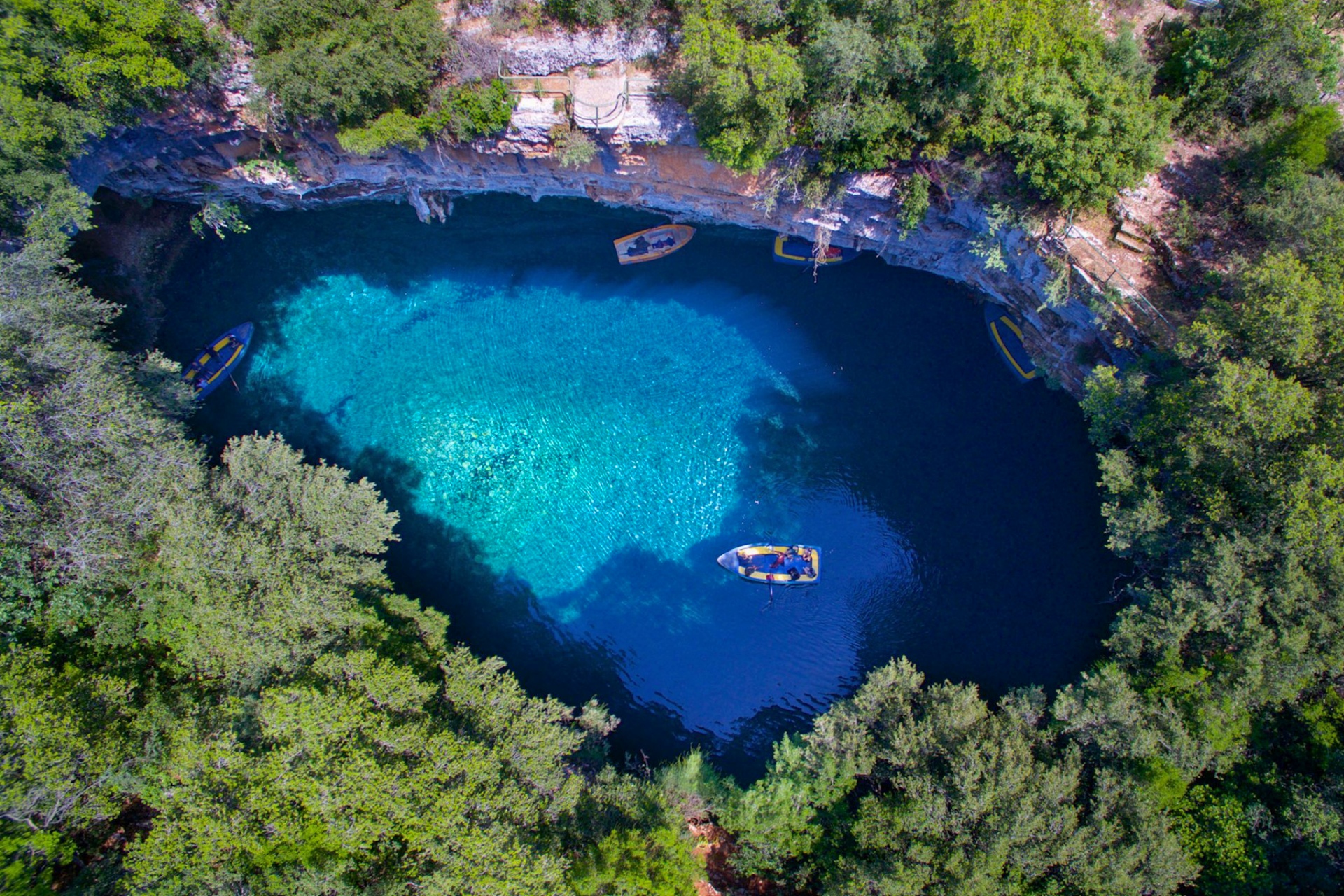 Drogarati Cave, a geological marvel over 150 million years old, was revealed by a powerful earthquake centuries ago and enchants visitors with its dramatic stalactites and stalagmites illuminated in warm hues.